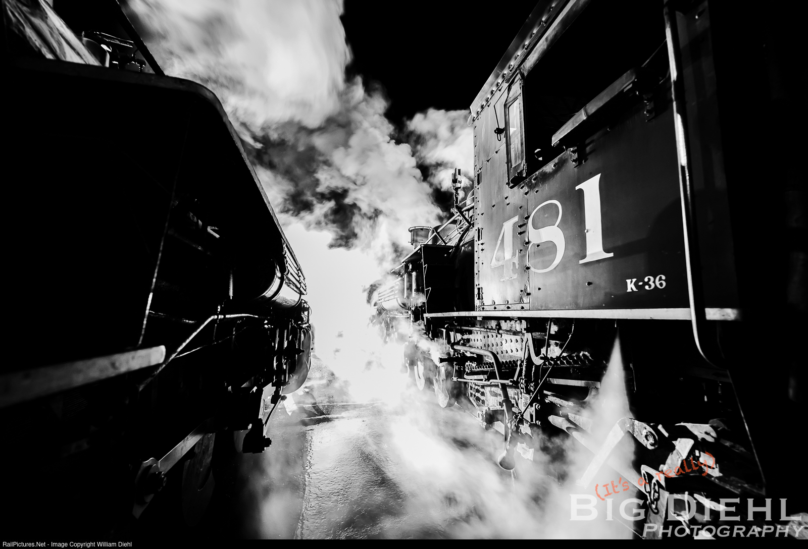 After 143 years of near continuous use of coal-burning power on the Silverton Branch of the Denver and Rio Grande Western, the last coal burner poses for her final night photo shoot under steam as such. Later this year, the 481 will undergo the transformation to oil-burning which will allow it to run year-round through the San Juan Mountains like its brethren. |