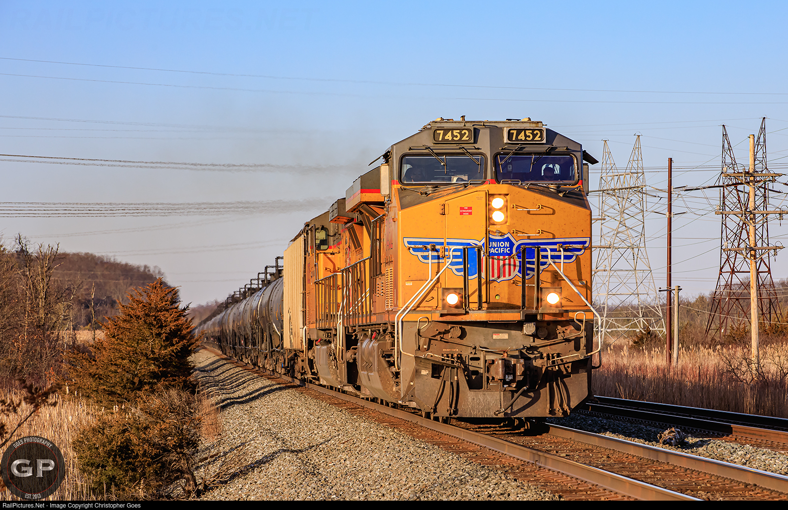 Union Pacific 7452 & 6325 proudly lead the loaded oil train "B741" South to New Jersey straight into the early part of the golden hour cruising towards Leeds Rd. in Athens.
