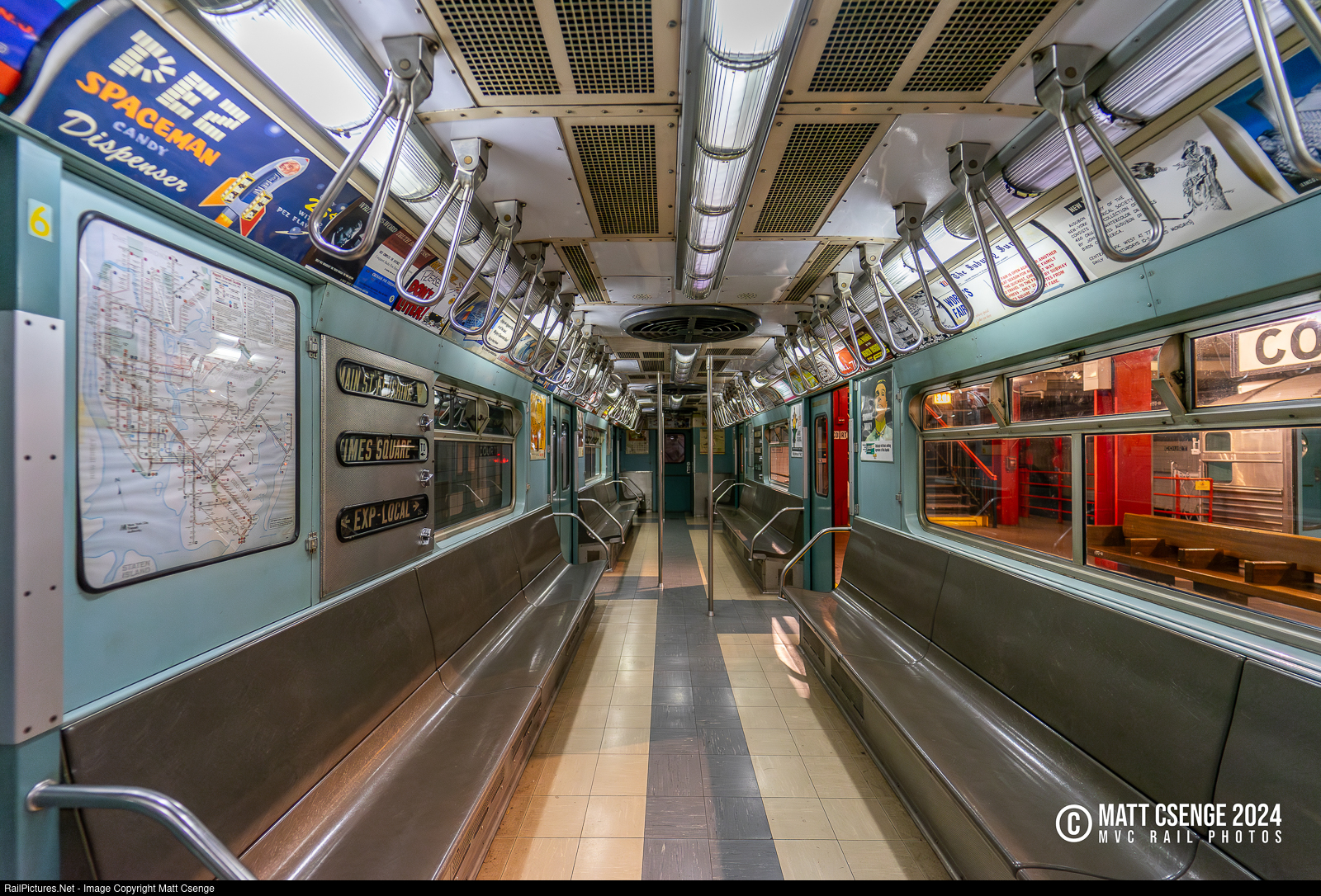 Sixties Interior. On display in the NY Transit Museum is New York City Transit Authority (NYCTA) R33S no. 9306, which was one of 40 cars built by the St. Louis Car Co. in 1963. These were arranged as single cars, with operating cabs at both ends, and were used to create 11-car trains for service on the 7. The model last ran in 2003, after which a handful were preserved and most were converted for work service. 9306 is notably the only R33S that was never refurbished, and thus still features its original 1963 interior. The NYTM has accented this with the addition of period-correct advertisements and maps! The car is used often on excursions with the "Train of Many Colors," and is a fan favorite in its blue and white World's Fair paint scheme.