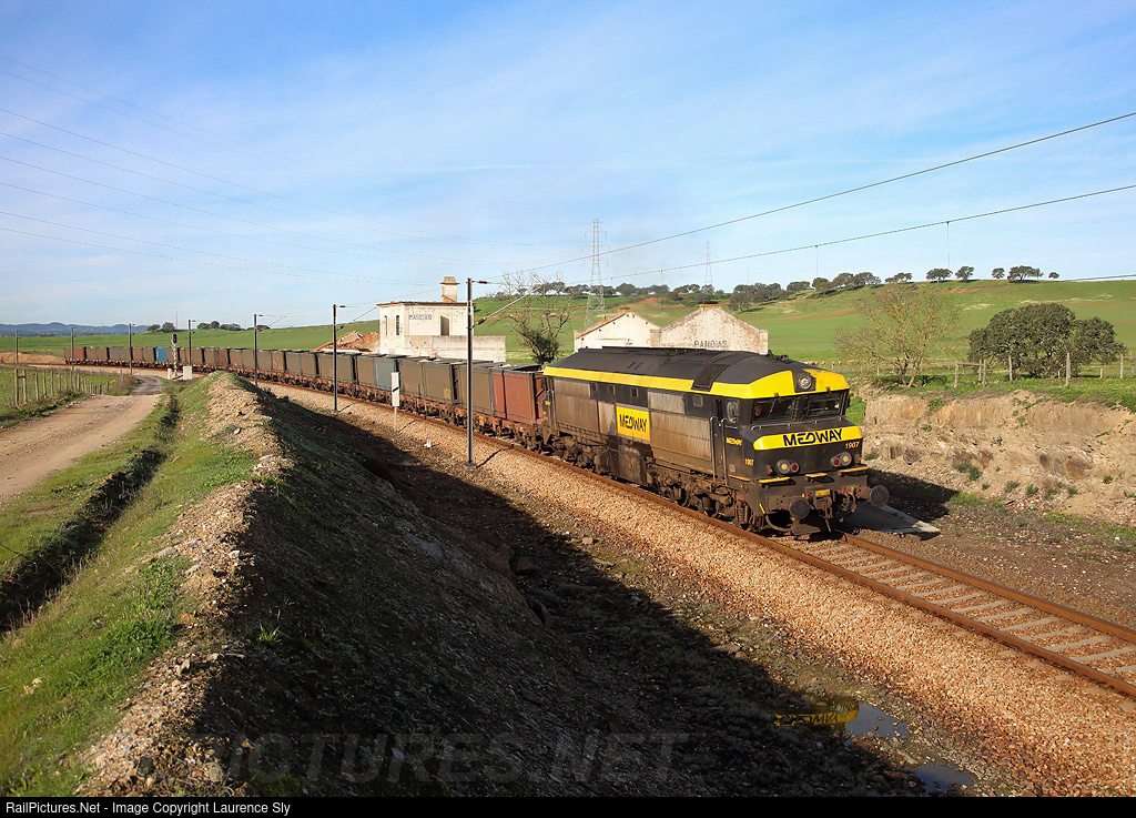 1907 passes Panoias whilst hauling train 55891 from Praias do Sado to Mina de Neves Corvo