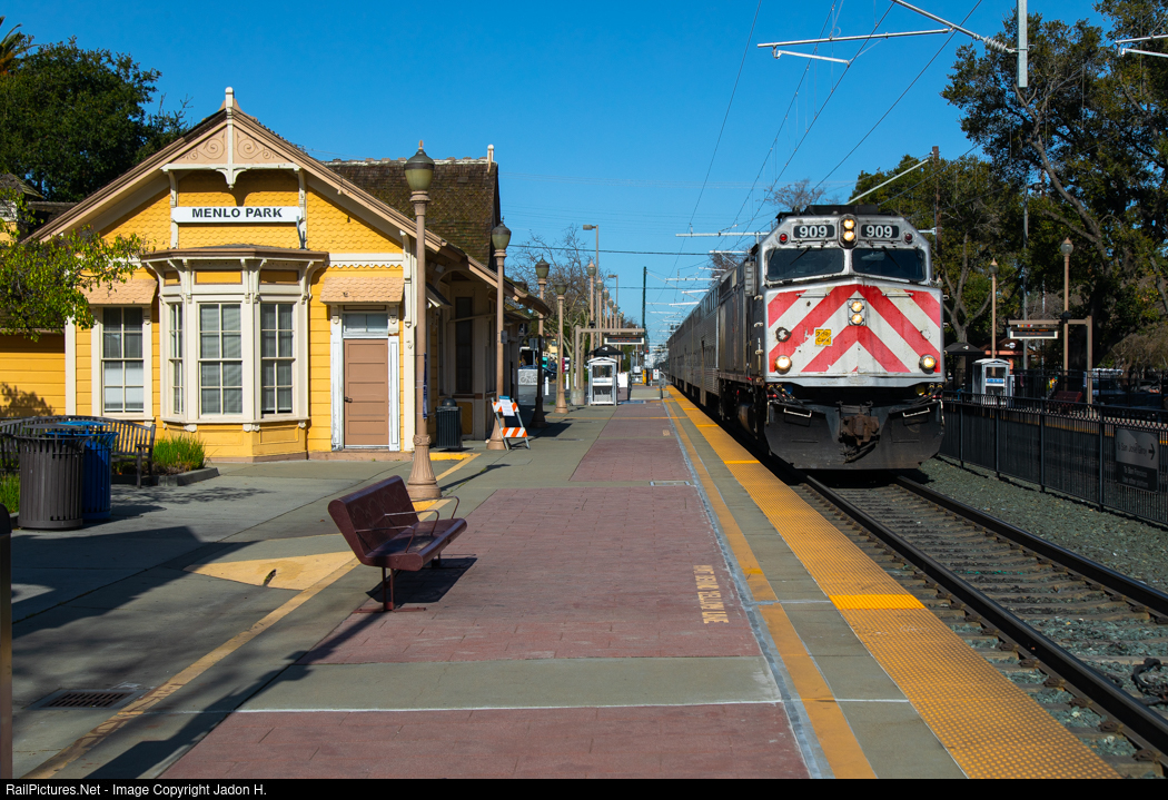 RailPictures.Net Photo: JPBX 909 CalTrain EMD F40PH at Menlo Park, California by Jadon H.