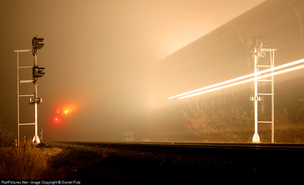 NS 12R wades through the pea-soup fog at Airport Rd. in Shippensburg. Canon EOS Digital Rebel 70-200mm F/4L lens. 13" @ F/4. I'm not sure when or if these signals will be cut in.