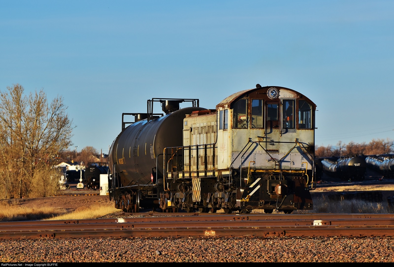 The 78-year-old Alco S1 still makes bank for the Hudson Terminal Railroad as it works the yard in Hudson, Colorado.
