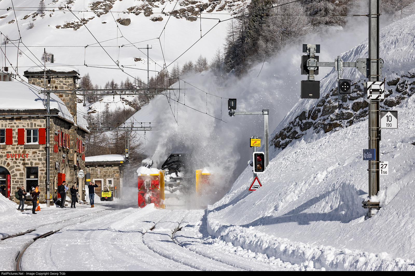 RailPictures.Net Photo: 23403, 95404 RhB - Rhätische Bahn Gmf 234, Xrot mt at Alp Grüm, Switzerland by Georg Trüb