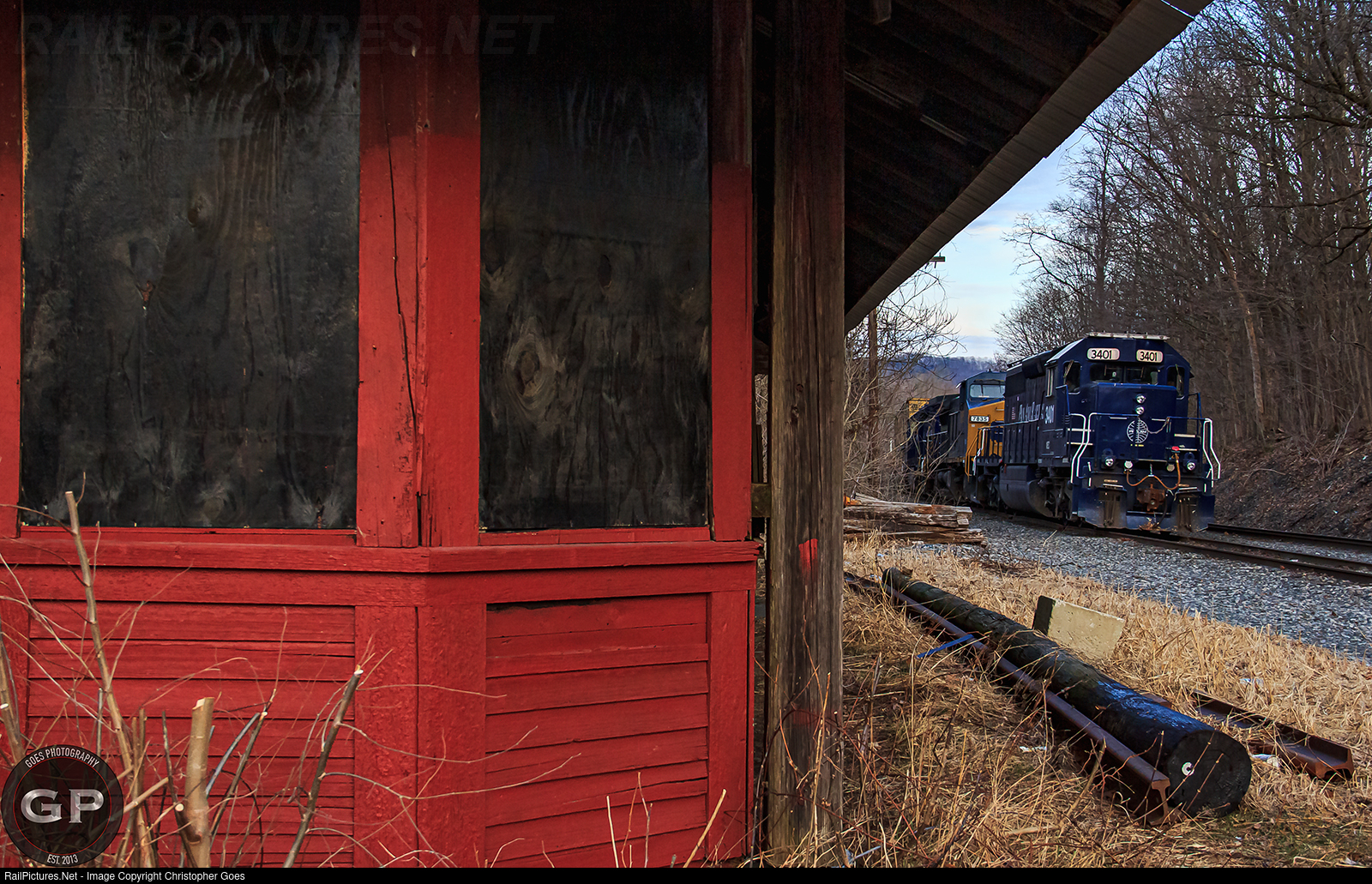 On the siding at Eagle Bridge, PanAm 3401 leads an eastbound late in the early evening waiting for a train out of Mechanicville alongside the B&M Depot.