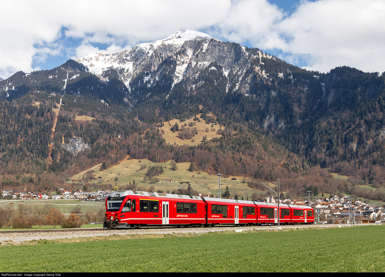 | "STZ" (Stammnetz Triebzug/multiple unit for the main network) ABe 4/16 # 3101 of the Rhaetian Railway is running the S2 service 1515 from Schiers via Landquart-Chur to Rhäzüns, between Malans and Landquart. Since Monday, March 11, these S-Bahn trains between Schiers and Landquart and vice versa have been canceled until further notice due to a lack of locomotive crews. There are additional stops for RE trains as a replacement |