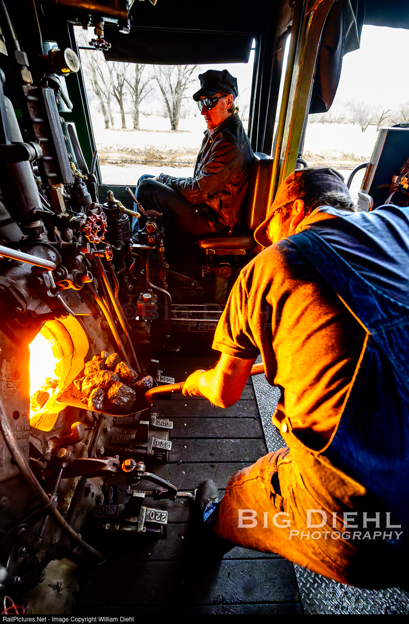 After 143 years of near continuous use of coal-burning power on the Silverton Branch of the Denver and Rio Grande Western, fireman John Hillier throws another scoop of coal into the belly of the beast of K-36 #481. Engineer Jon watches on as we ramble on through the Hermosa Valley onwards to Cascade. |