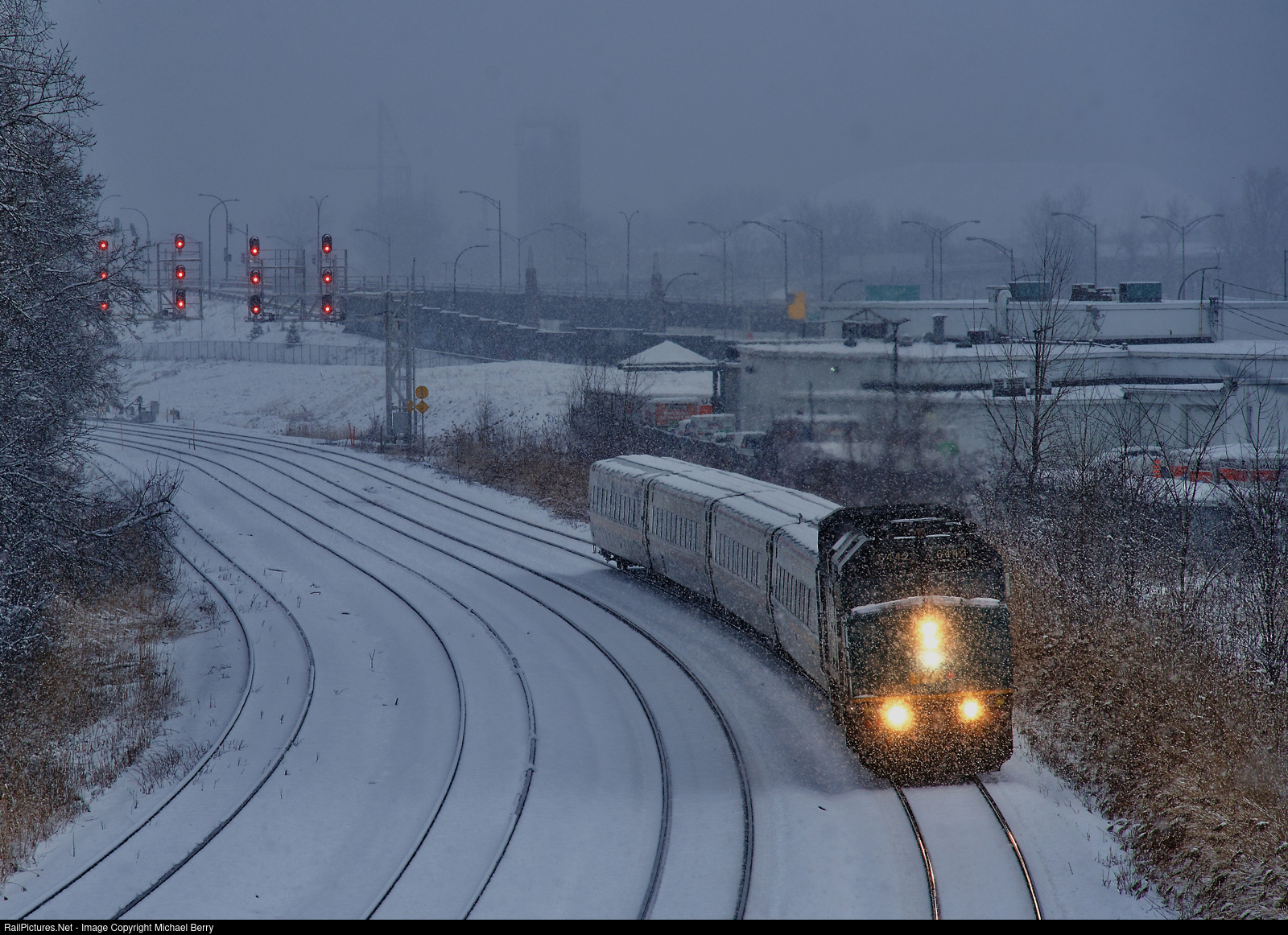VIA 63 for Toronto passes through Montreal West during a brief but intense period of snow.