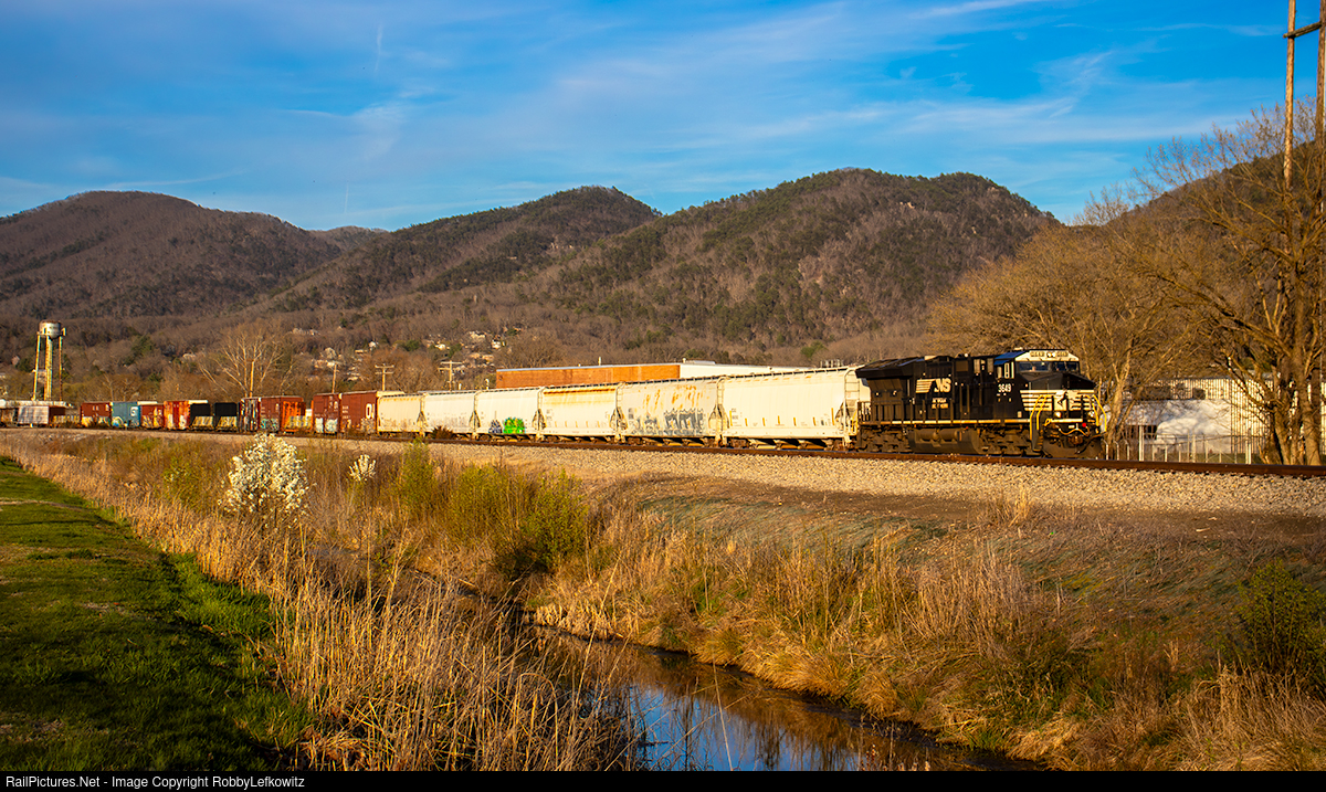 NS 3649 leads manifest 13Z southbound through Buena Vista, Virginia, as the sun begins to lower for the day. |