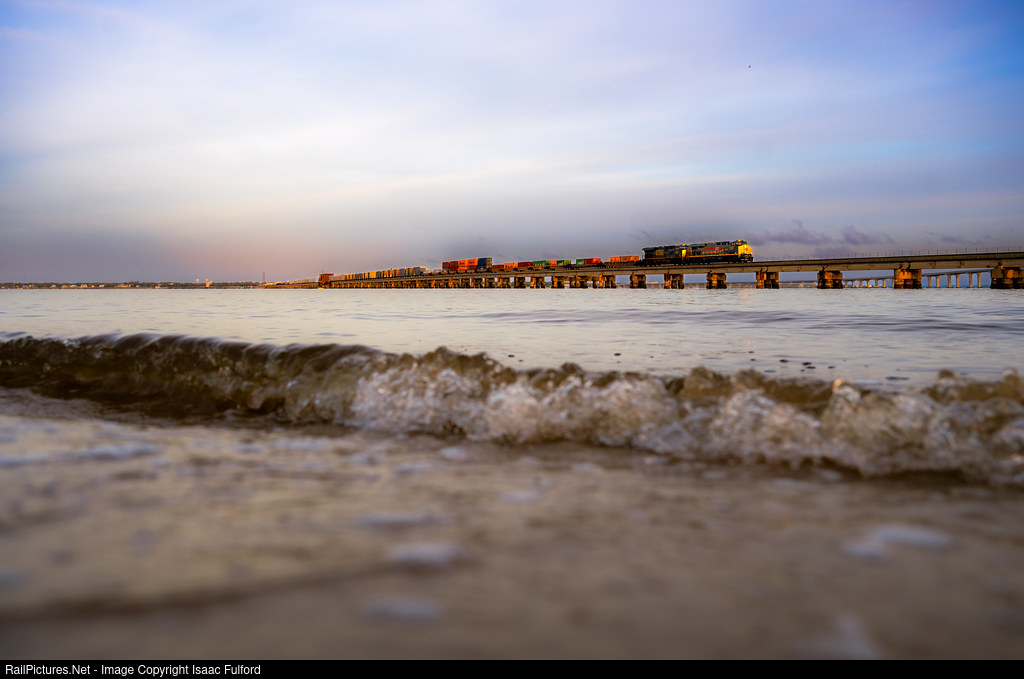 | CSX 1972 was a nice lead engine on the front of this M602-16 catching the first rays of sunlight on a spring saturday morning in Henderson Point, MS. The massive M602 hit the west end of the bridge at sunrise, and a small hole in receding fog allowed for some beautiful golden sun to hit the train as it slowly rolled across the confluence of Saint Louis Bay and the Gulf of Mexico. Realistically in this scenario I would have shot any train in this lighting, but seeing the long gone Family Lines System logo on the side of the freshly outshopped 1972 made it even better...