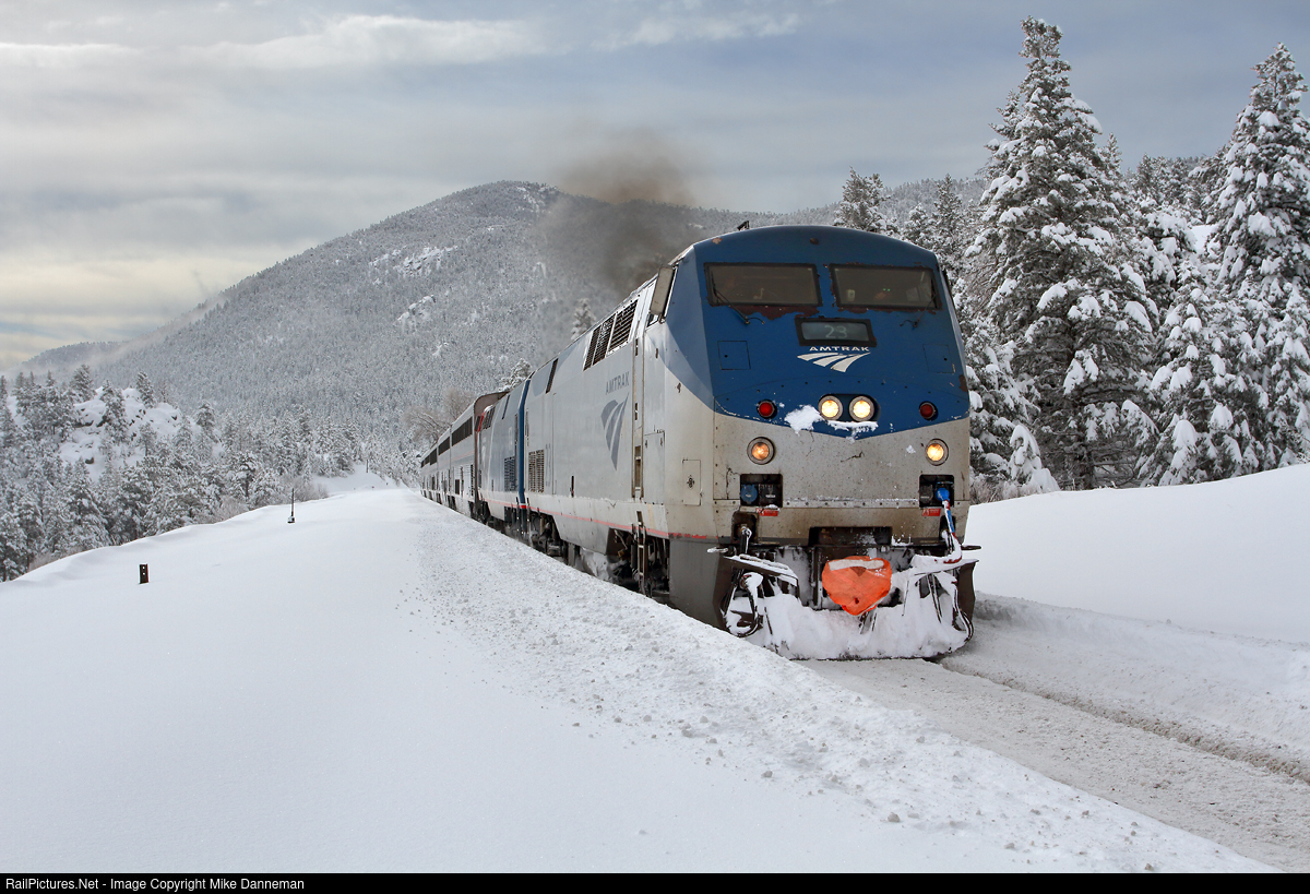 Amtrak’s Winter Park Express heads west through Crescent, Colorado, the morning after a big Front Range snowstorm to the delight of the skiers aboard that are ready to hit the slopes of Winter Park on March 15, 2024.