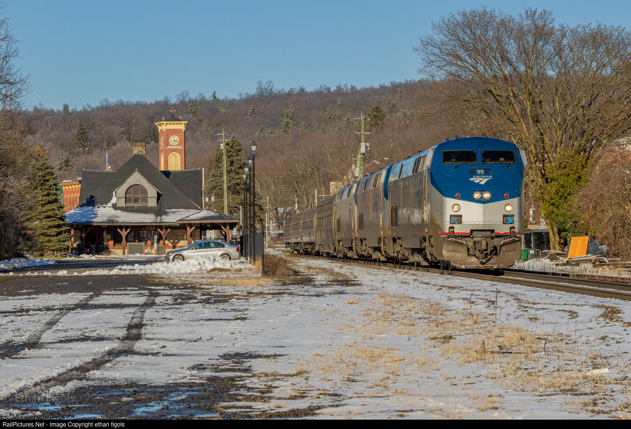 RailPictures.Net Photo: AMTK 99 Amtrak GE P42DC at Chatham, New York by ethan figols