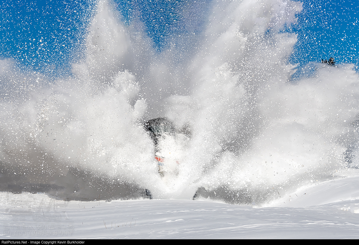 With around 3 feet of snowfall overnight, the southbound Amtrak Vermonter was the first train operating over the New England Central Palmer Subdivision on Sunday, March 24. Led by Phase II Heritage P42DC, 130, the stretch between White River Jct., VT and Charlestown, NH, promised to offer some snow moving. Following a crossing, the snow that was above the rail head was being displaced by the southbound Vermonter!