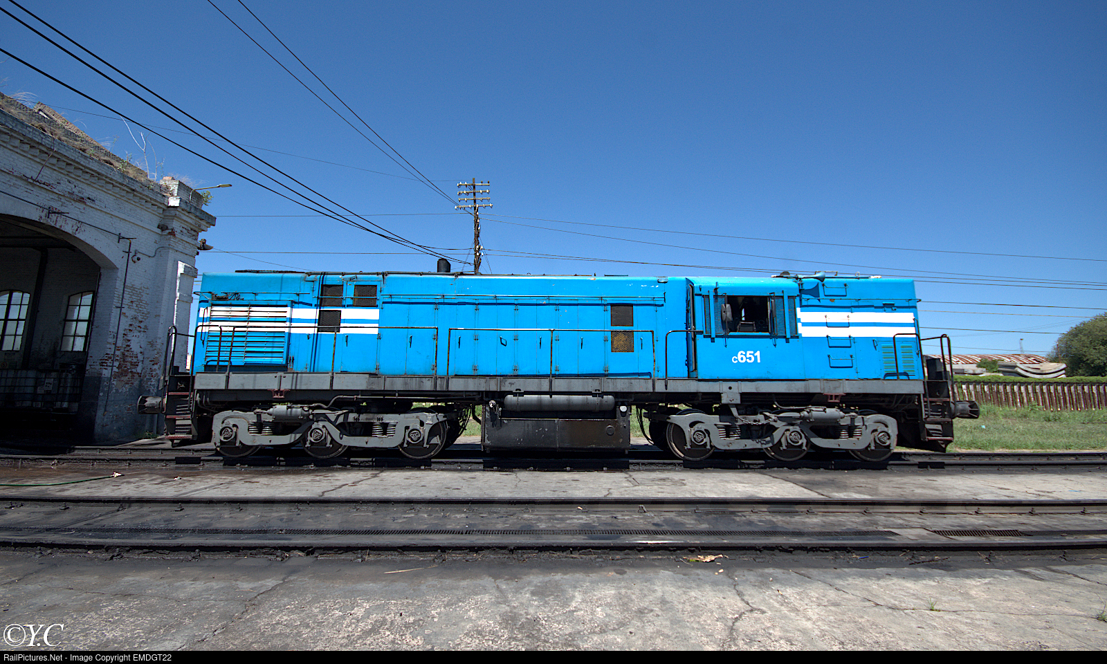 | Engine C651 idles outside the Haedo shops after working the yard earlier that morning. Built for RENFE in Spain in the 1960s, this unit was later sold to the privately-owned Trenes de Buenos Aires (and wound up being acquired by the state-owned Trenes Argentinos). |