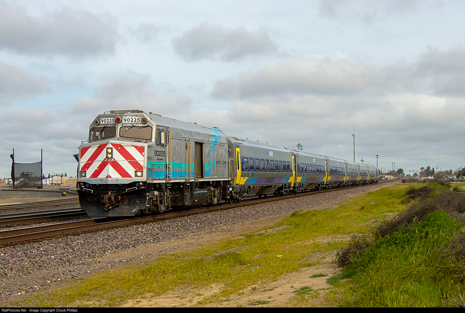 Southbound San Joaquin under cloudy skies with a hint of Sunshine at Empire Ca.