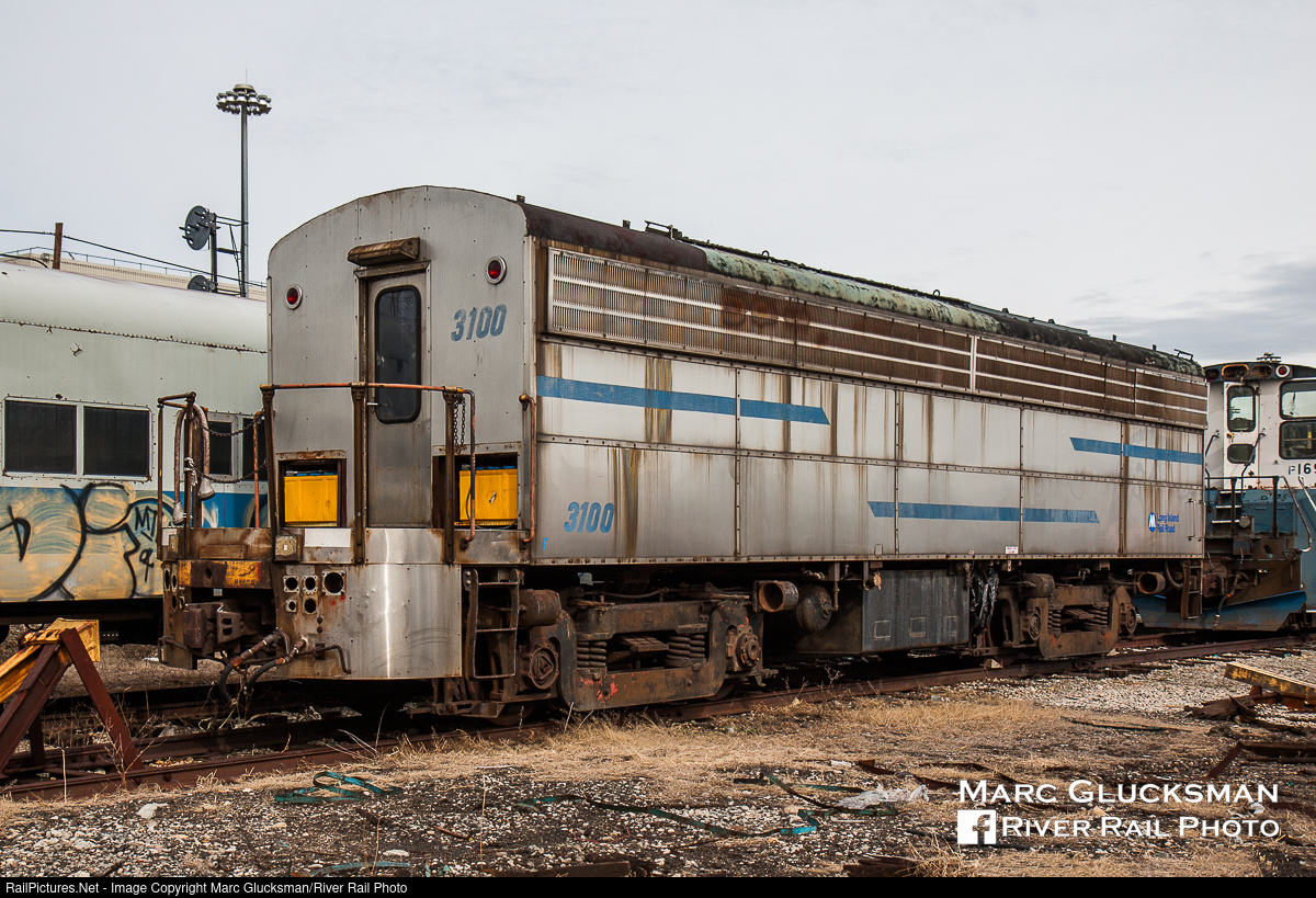 | Retired Power Pack. LI 3100 (né-WM 304, FA-2, 1/1951) had already been retired, but after conversion served as a cabless HEP generator/power pack. During an Electric Railroaders Association tour of the MTA Long Island Rail Road Morris Park Facility, Richmond Hill, Queens, New York on March 28, 2009, our group was brought around the grounds to see some of the many different types of locomotives on the property. Although not all were active, it was quite a timeline of EMD, GE, and Alco. In the current era, LIRR is exclusively an EMD railroad. |