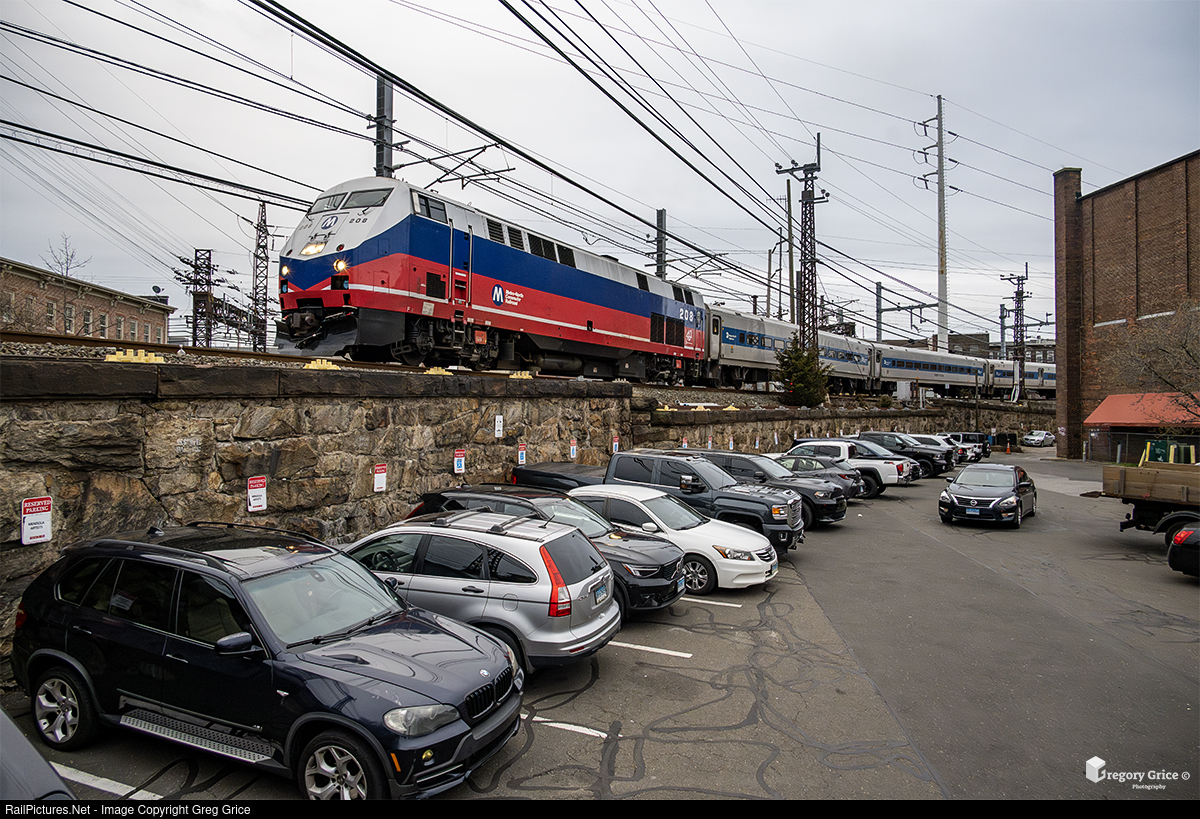 On the cloudy afternoon of March 22nd 2024, Metro-North's 40th Anniversary "Beach Ball" heritage-wrapped P32AC-DM, MNCW 208, leads train 1848 on the wall over South Norwalk, Connecticut as it branches off the New Haven Line and onto the Danbury Branch at CP 241.