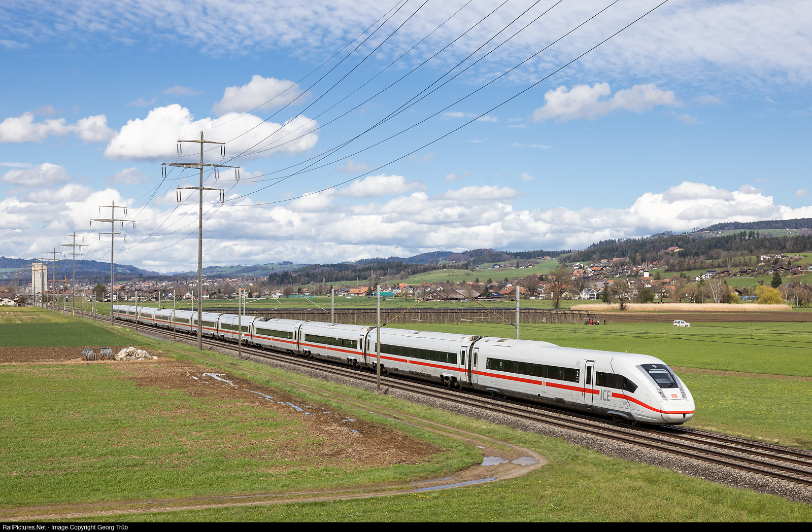 | Highspeed train ICE 4 # 9003 of the Deutsche Bahn is running the ICE 275 from Berlin Ostbahnhof via Frankfurt-Basel-Bern-Thun to Interlaken Ost, between Wichtrach and Kiesen. |
