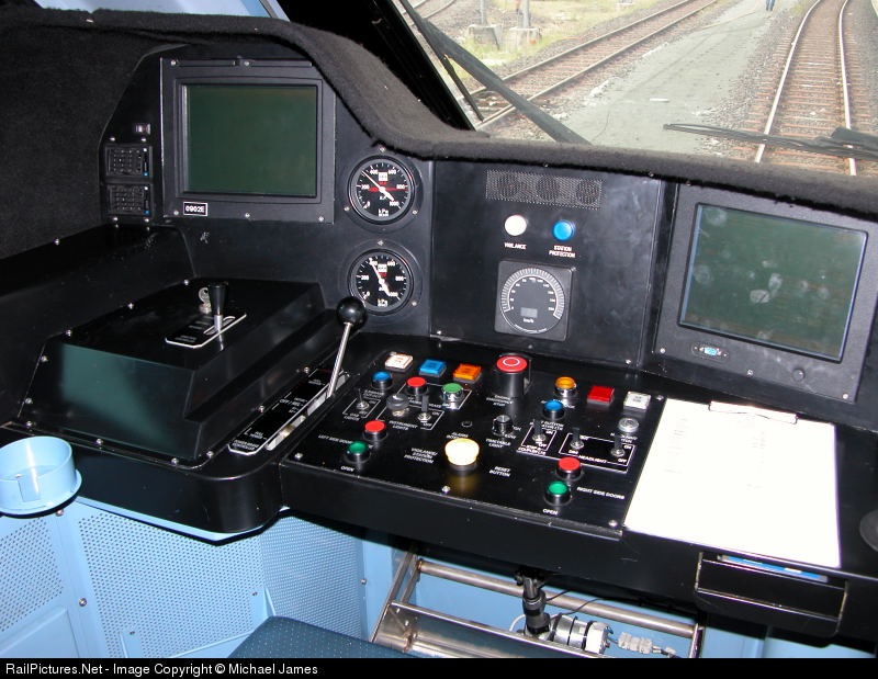 | The cab of Diesel Tilt Train Power Car DTD 5402 is similar to an aircraft cockpit. It has all the modern technologies, including a 'Black Box' that will provide valuable information to the investigation surrounding the Tilt Train derailment last Tuesday. DTD 5402 was the trailing Locomotive on #VCQ5 which hit a truck at a Level Crossing on November 27, 2008. |