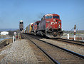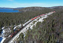 CPKC's train #118 approaches Marathon running along Lake Superior.