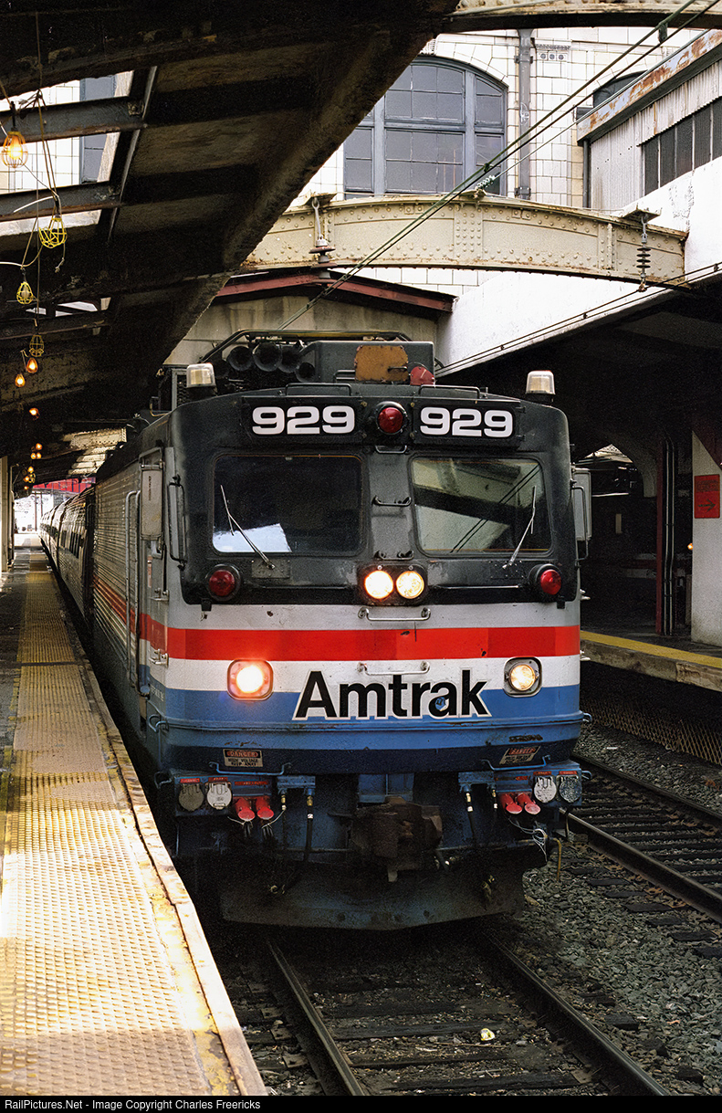 A southbound Amtrak Northeast Direct train pulls into Pennsylvania Station Baltimore, Maryland, on March 4, 1999. Power is AEM7 #929. My family and I would take this train down to Washington DC, where I'd be the best man at my brother's wedding in a couple of days.