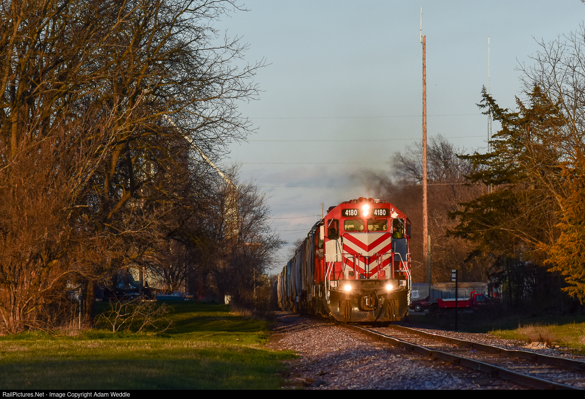 | The well tuned Leslie horn atop the WAMX 4180 wails, as L355 makes track speed through Brodhead. The train has just gone through the first of ten crossings, all which are located within a 4000 foot stretch through the center of town. |