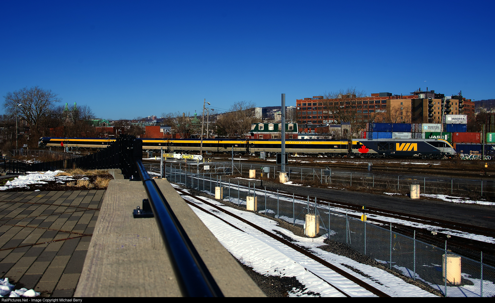 VIA 633 passes a park that overlooks Pointe St-Charles Yard.