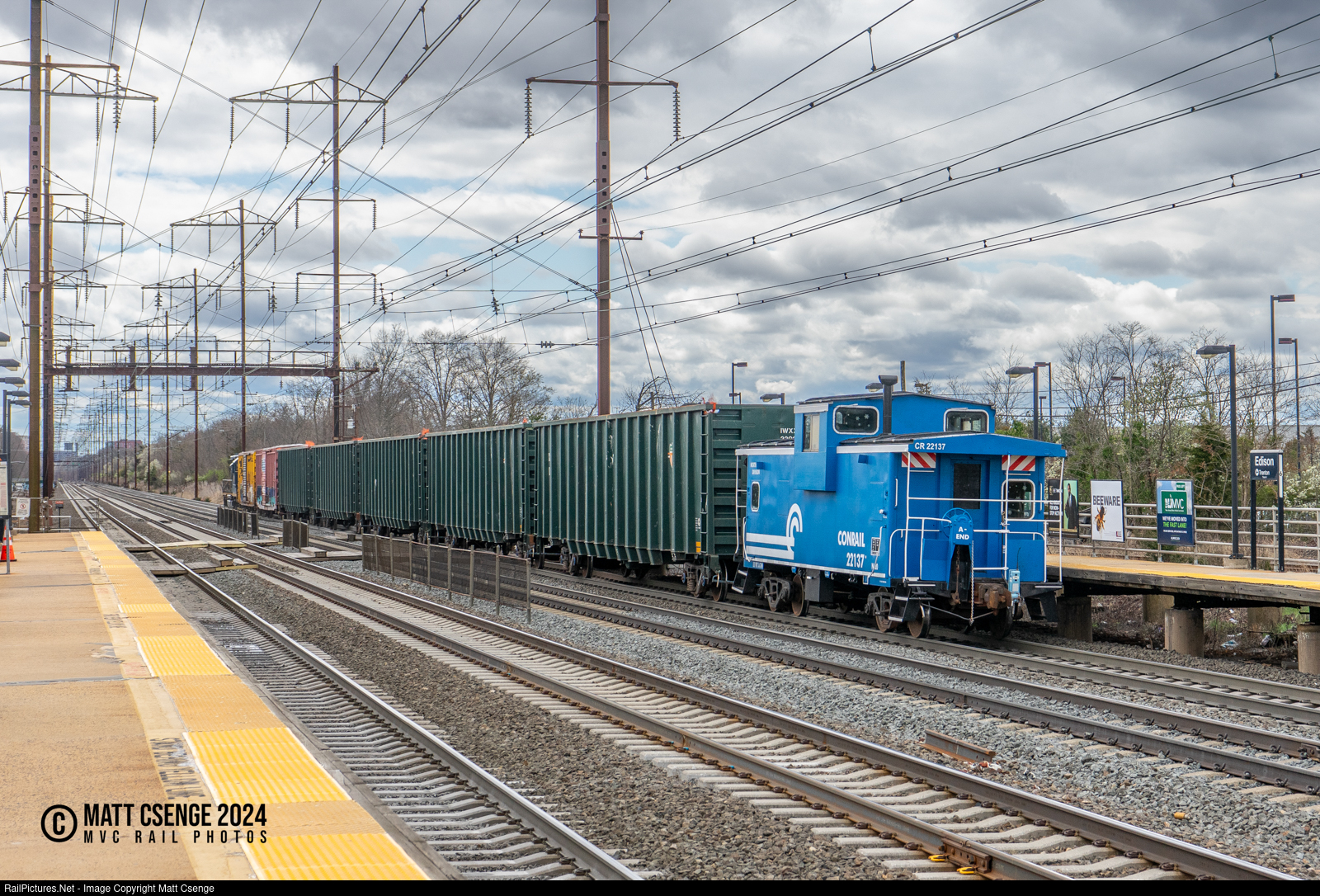 Conrail Shared Assets Operations caboose 22137 brings up the rear of train ME-2 as is passes through Edison Station heading to serve industries on the Northeast Corridor.