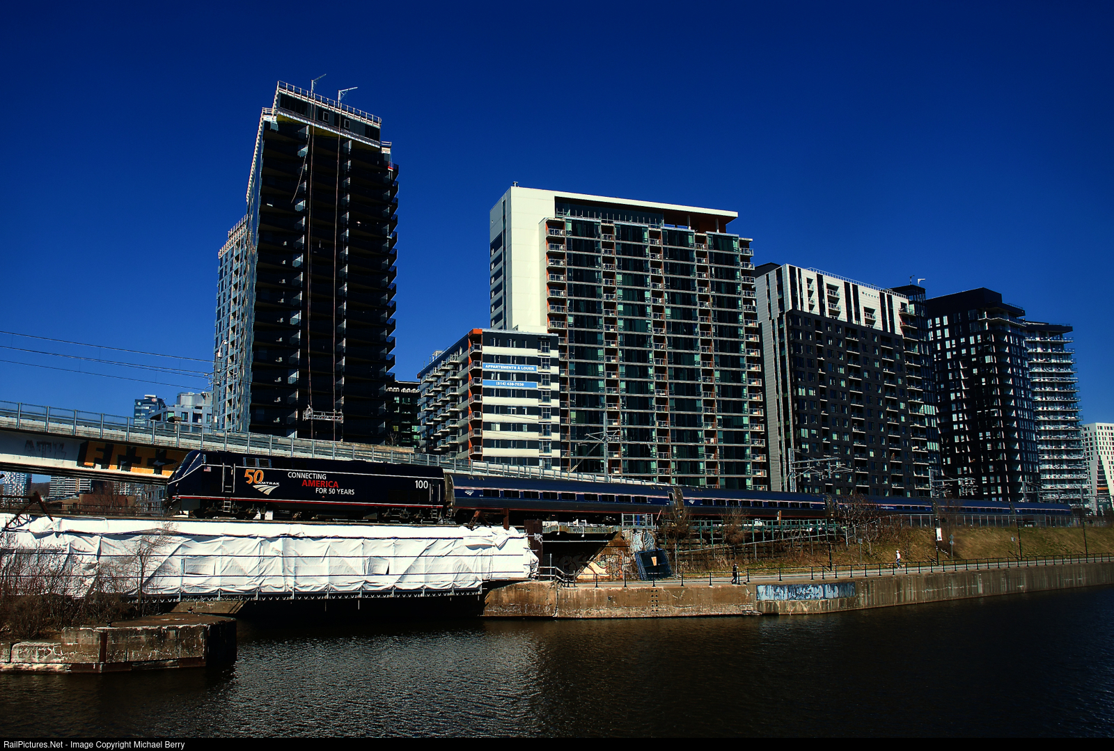 RailPictures.Net Photo: AMTK 100 Amtrak GE P42DC at Montreal, Quebec, Canada by Michael Berry