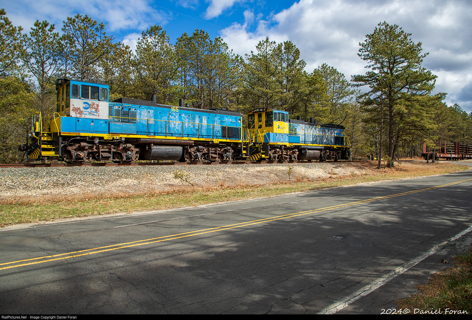 For two consecutive weekends the Welded Rail Train dropped rail on the mainline between Calverton and Manorville. When crews weren't working, the train was laid up on the Calverton Spur which is the only siding that could hold 28 cars without fouling any crossings. The Calverton Spur is mainly used by New York Atlantic Railway for switching at Eastern Fence, so it's always a treat to see LIRR on the spur.