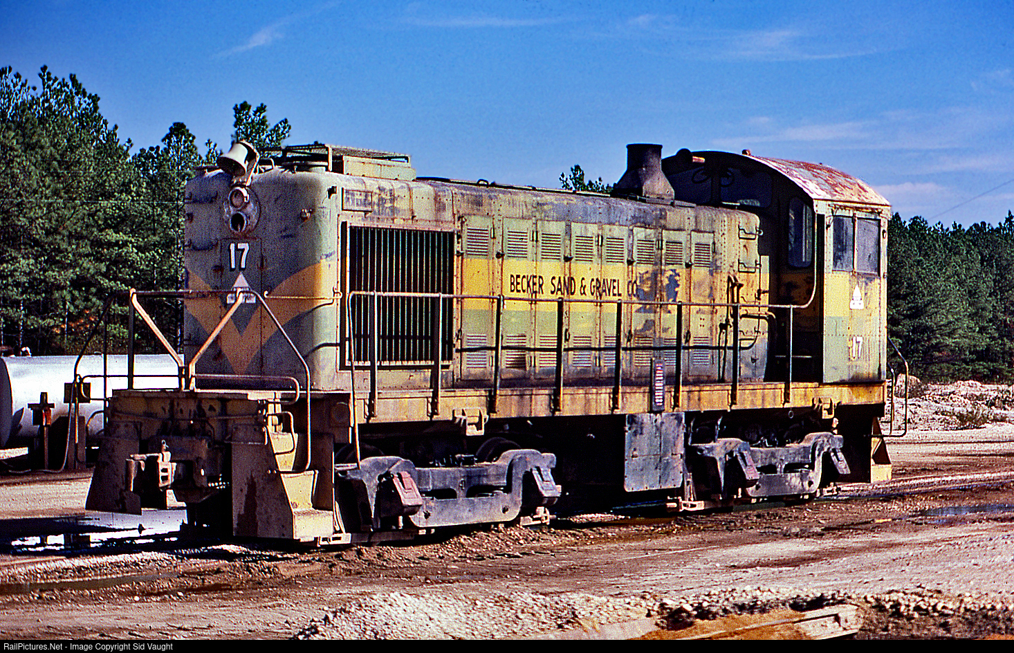 A fate worse than death? Maybe not but life was hard for an old unit on BS&G's makeshift railroads. One of the last truly ragtag old southern operations. Ramshackle "Snaptrack" laid on the ground carried trains of retired ore cars out to the sand pits, rocking, rattling and rolling. Beat up old units were in charge. This former B&O wreck has had the steps extended on one side. The bell probably doesn't work. Photo by unknown. From my collection.