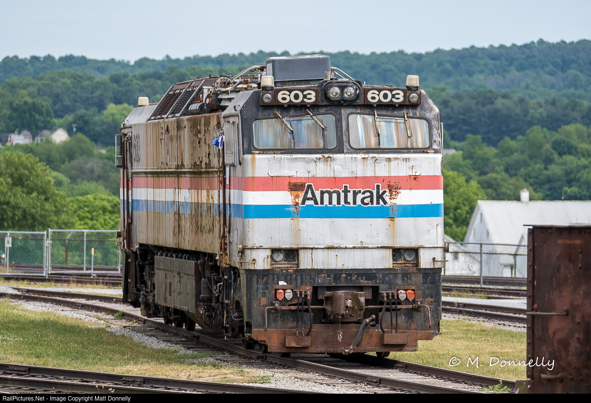 | The elements have not been kind to the 603, the sole Amtrak E60 in preservation. |