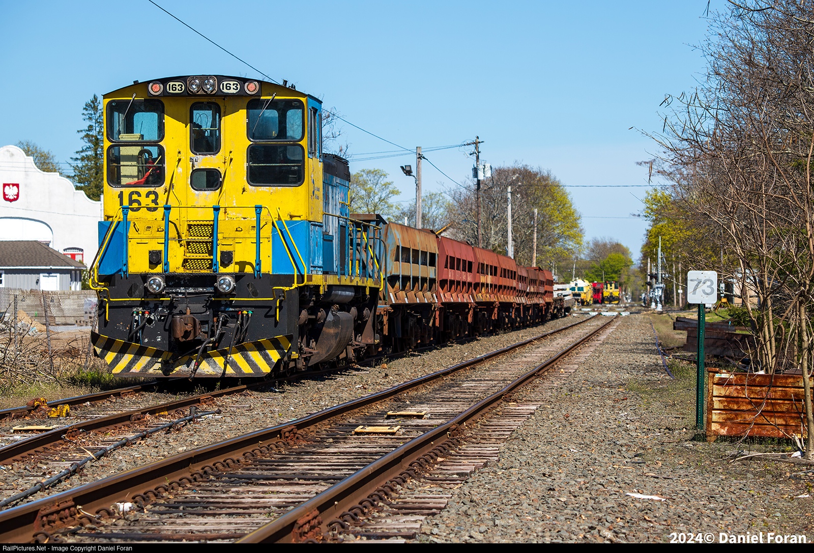 | The week of April 22nd is the last of the crossing rehabilitation in Riverhead. We see two separate work trains sitting in LD siding, awaiting crews to continue their work the rest of the week. |