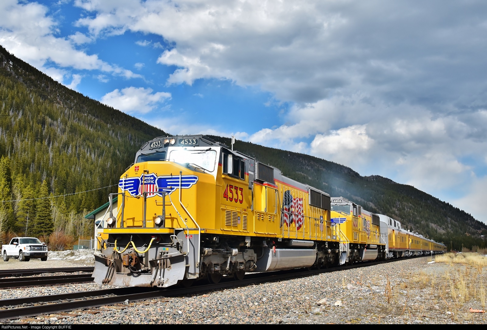 UP 4533 (SD70M) leads an officer's special towards the Moffat Tunnel, passing the trusty designated chase vehicle dubbed "The F-Unit".