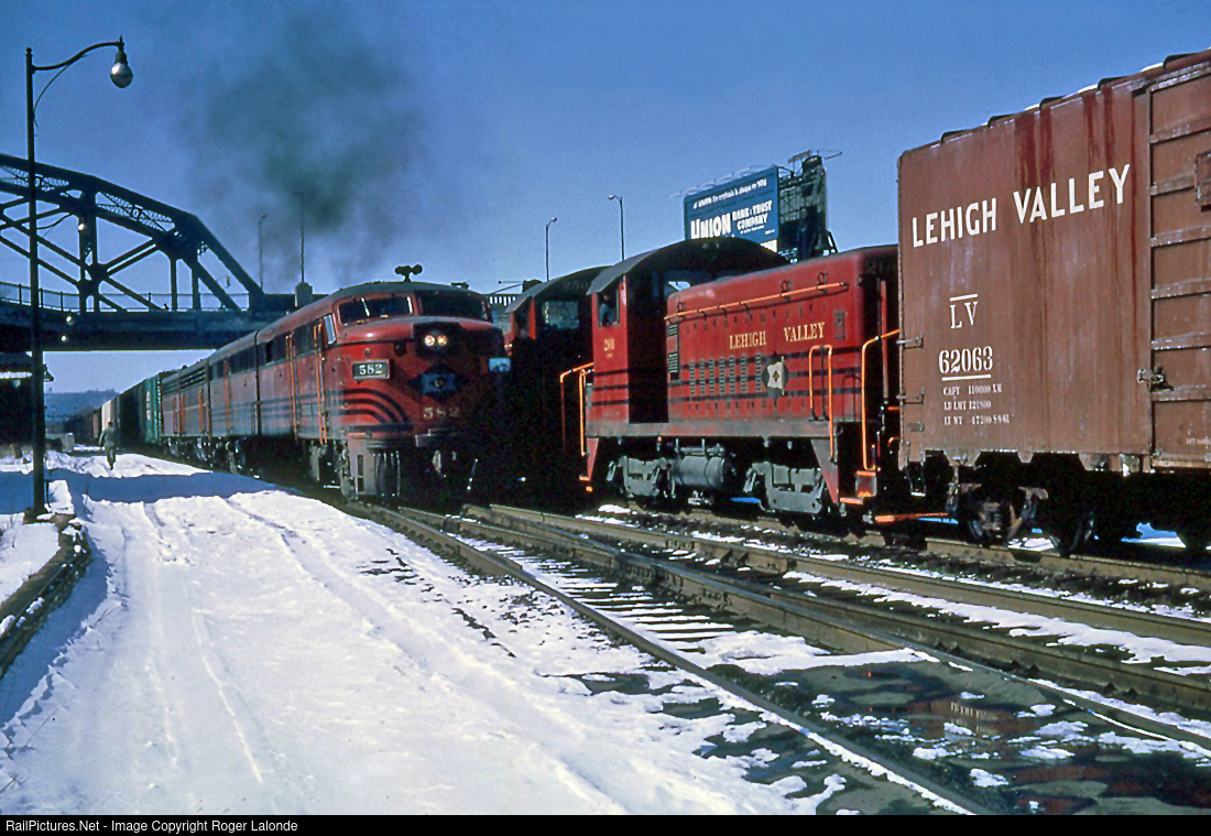 Lehigh Valley Alco FA2 582 mated with an FB-1 and two EMD counterparts powers this NE-1 passing in front of the joint LV-RDG station with a pair of SW-8's working the locals on February 29, 1964 at Bethlehem, PA. Photo by Bill Brennan, from my collection.
