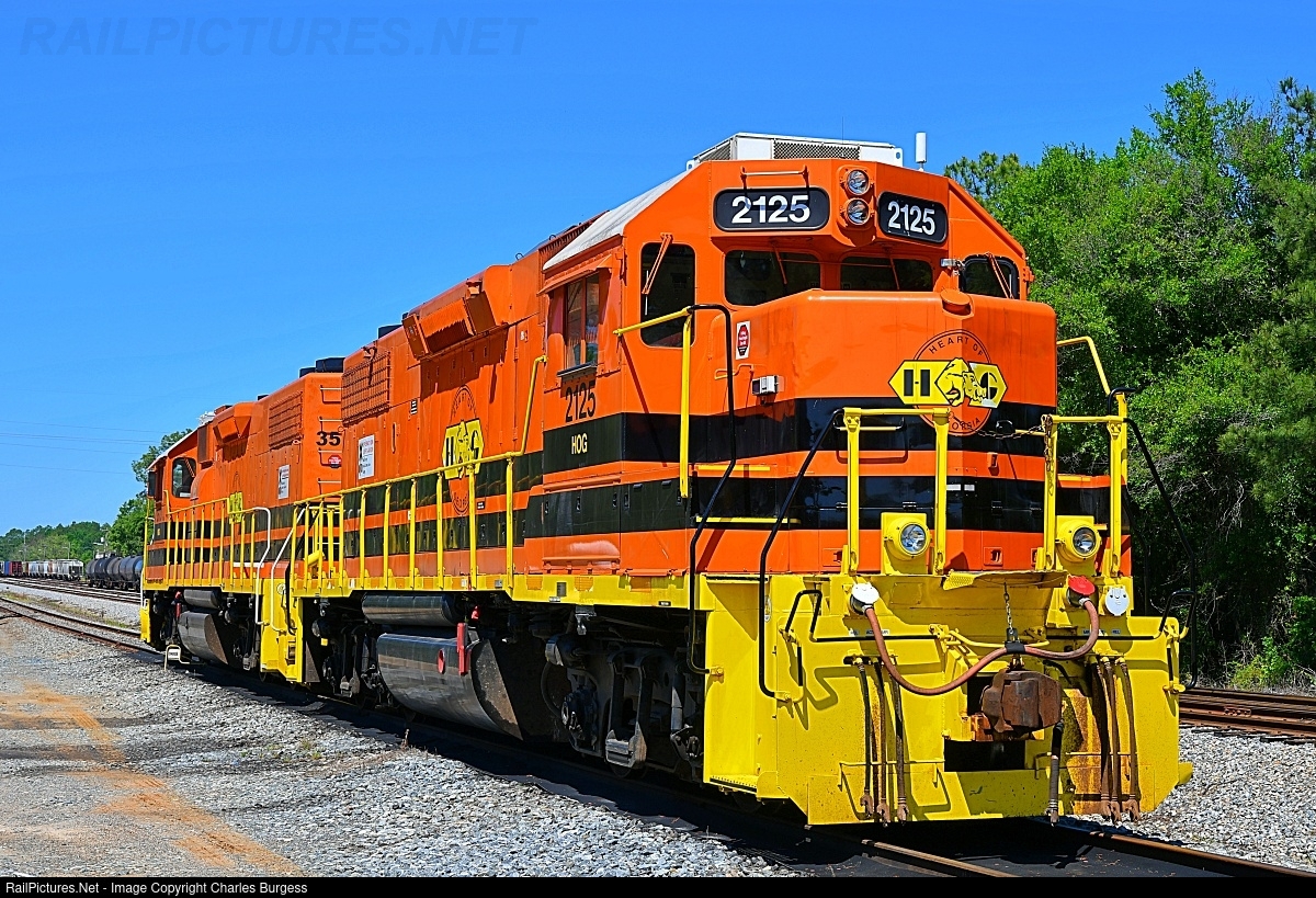 | Two Genesee & Wyoming units lettered for the Heart of Georgia Railroad get to enjoy a rest on a quiet Saturday morning. HOG 2125 was an original high hood Southern unit before being rebuilt. Of note, this unit still retains its bell on the rear of the long hood. |