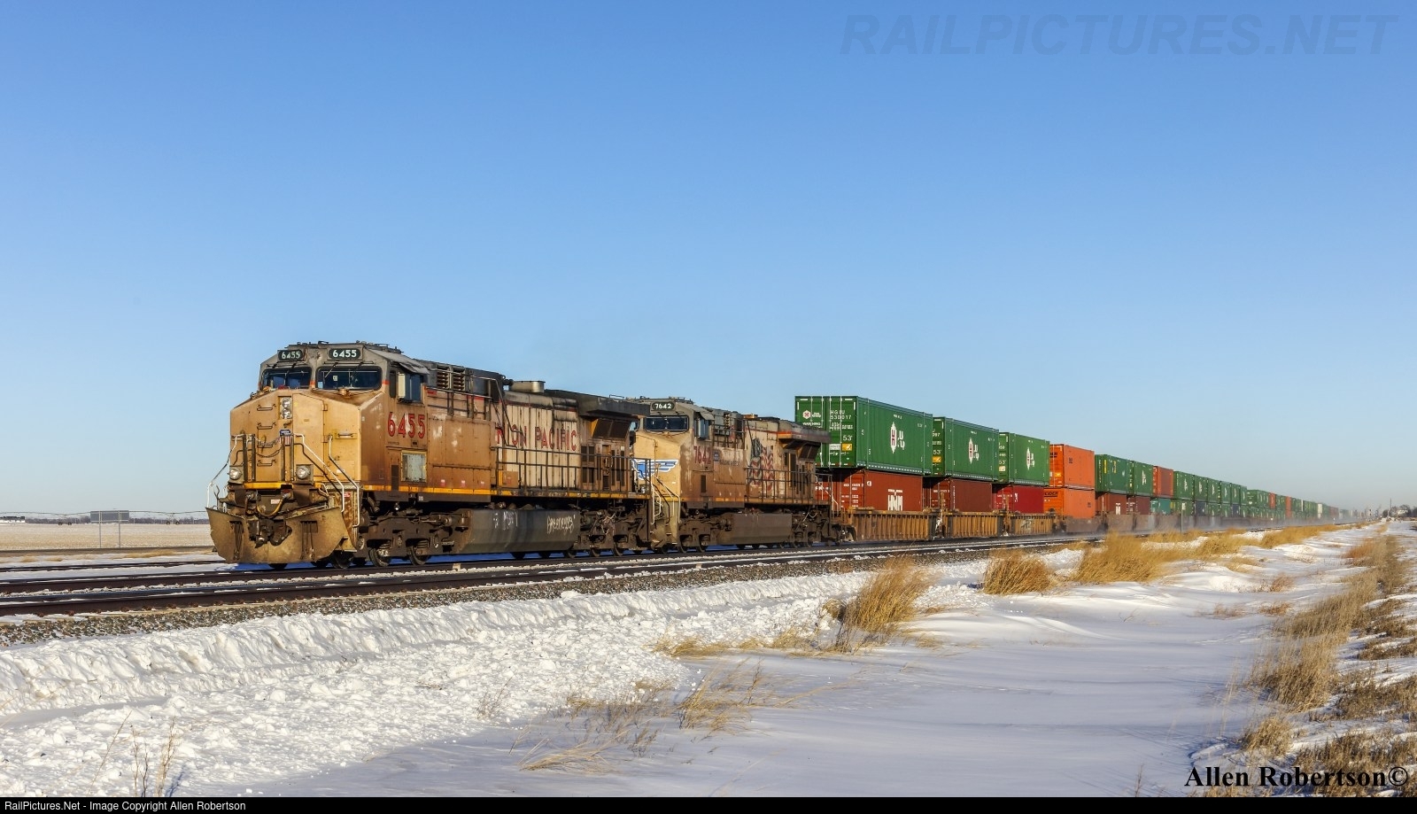 UP 6455 & 7642 power a westbound intermodal train.
