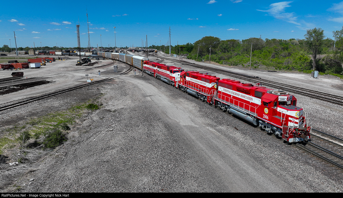 After arriving Madison Yard with the 101 transfer from Luther Yard in St. Louis, TRRA 2006, 2010, 4002 and 4001 take headroom at the south end of the yard.