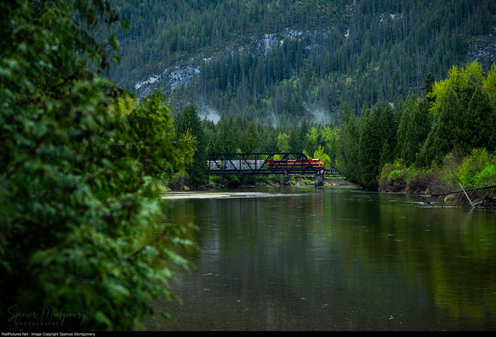 KCS 4129 pushes hard on the rear of a loaded grain train as they go over the Eagle River.