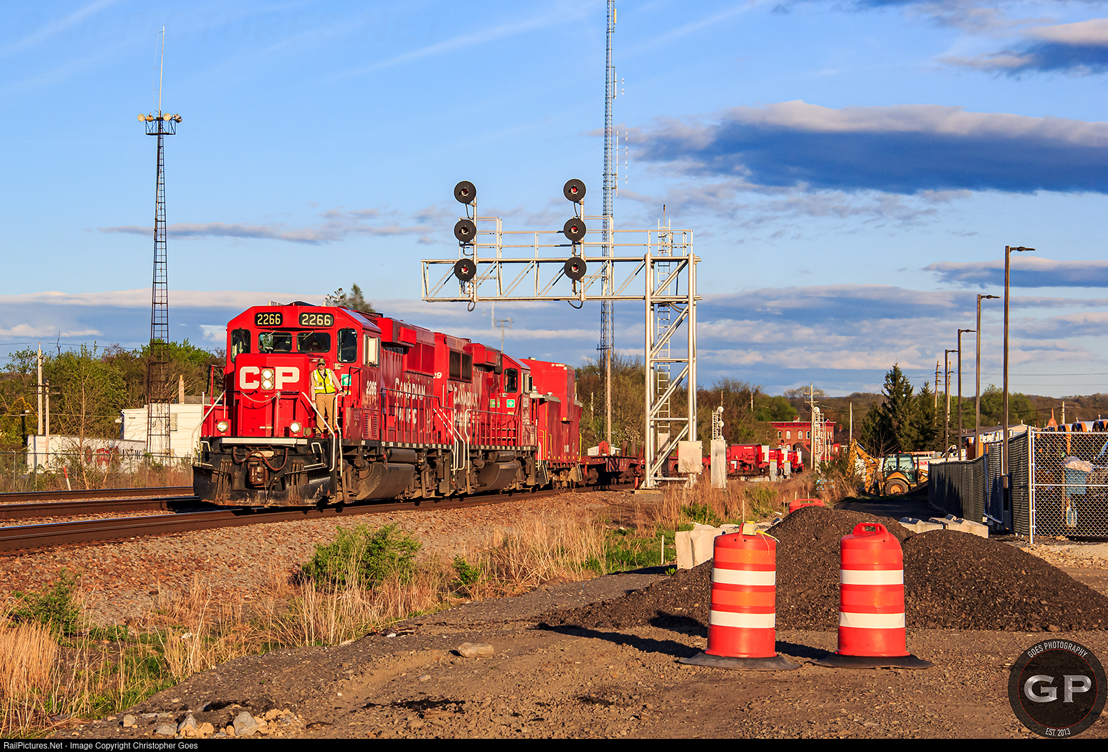 | Golden hour sets over Mechanicville as the G40 crew onboard CP 2266 takes down CPF-468 bringing empty High n' Wide cars back out to GE in Schenectady, NY. |