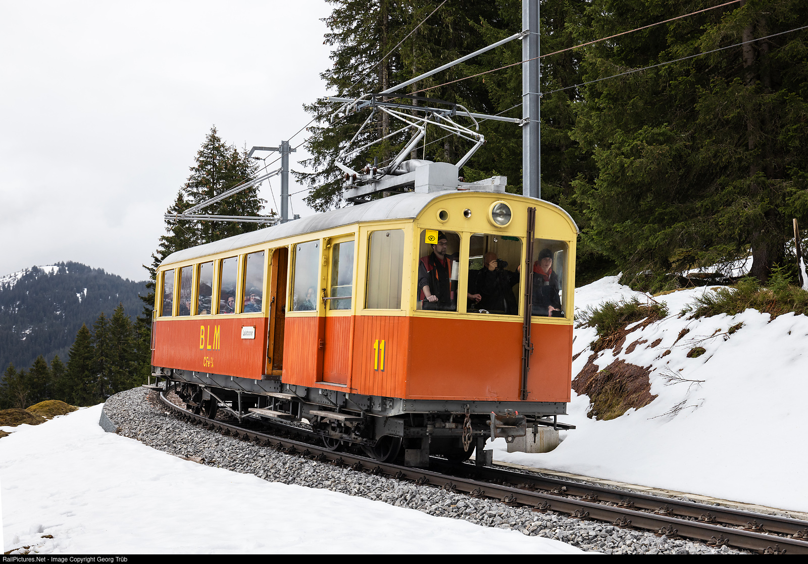 RailPictures.Net Photo: 11 BLM Bergbahn Lauterbrunnen - Mürren CFe 2/4 at Mürren, Switzerland by Georg Trüb