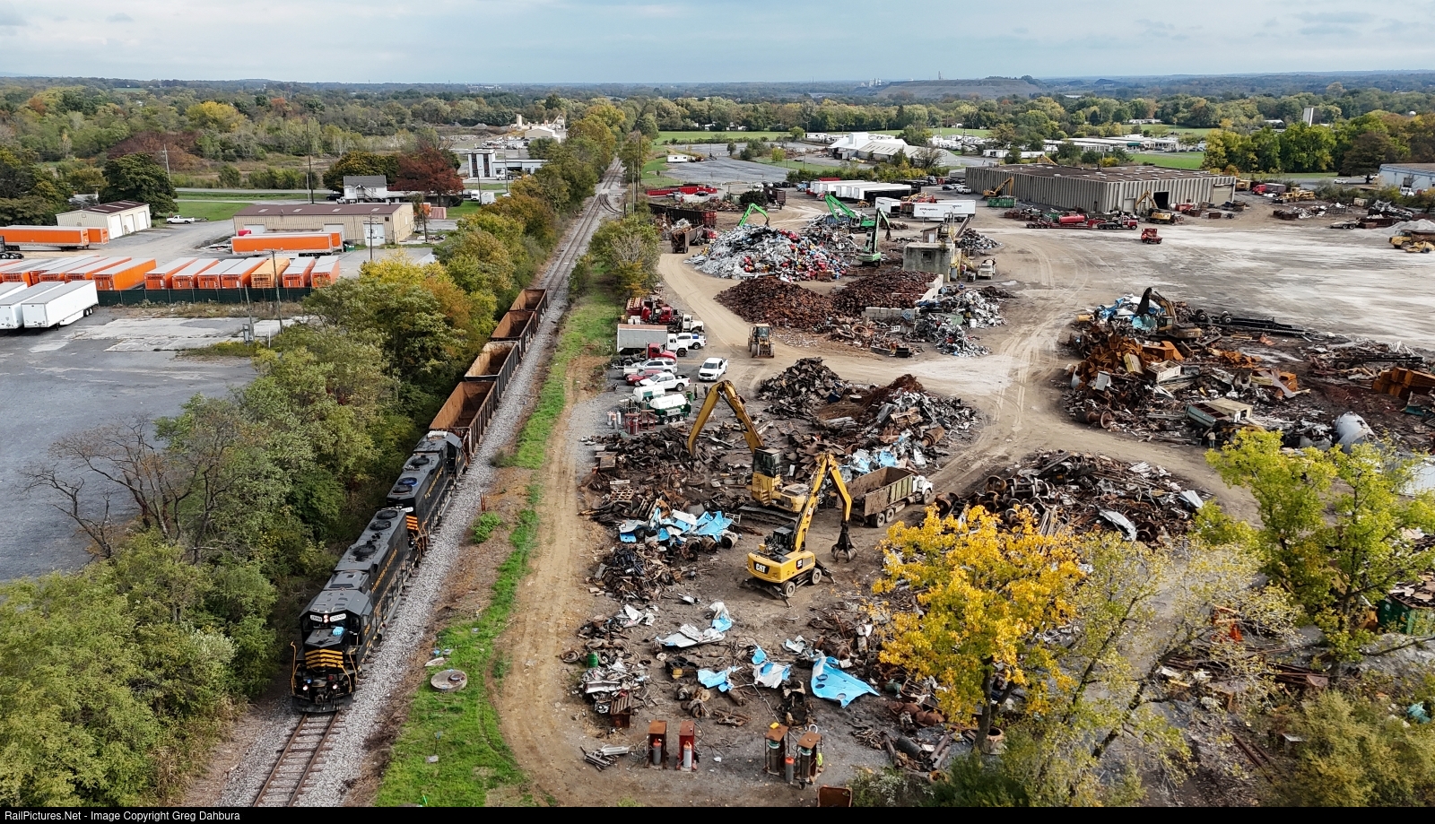The W&W 102 train passes my scrap yard, Hub Scrap in Winchester, VA. I largely moved my operation from Hagerstown, MD to this site in 2019. It had been the Zuckerman Company's site since the mid-1960's and railroad shipper since the PRR days. Zuckerman closed in 2015-2016 and the W&W lost a customer for a period. As evident from the photo, we have resumed rail service and become a steady customer for the W&W. If you look closely you can see scrap from several CSX derailments- notably the blue covered hopper debris and wheels from the Hyattsville derailment and the traction motors from one of the AC4400's destroyed at the Sandstone, WV derailment.