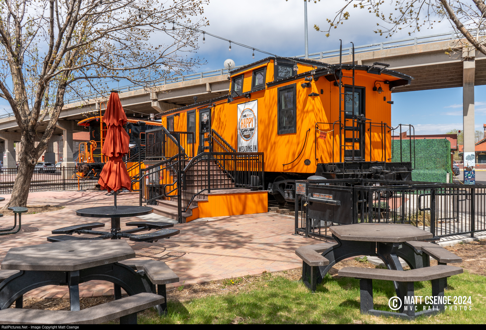 Happy Endings Caboose Cafe. Near the Cañon City station of the Royal Gorge Route Railroad sits Happy Endings Caboose Cafe, which is situated in a pair of retired cabooses. Seen here is caboose 1006, originally built in 1924 by the Mt Vernon Car Manufacturing Co for the Great Western Railway. The caboose operated with the GWR until 1970, after which it changed hands numerous times before coming into its current arrangement in 2018.