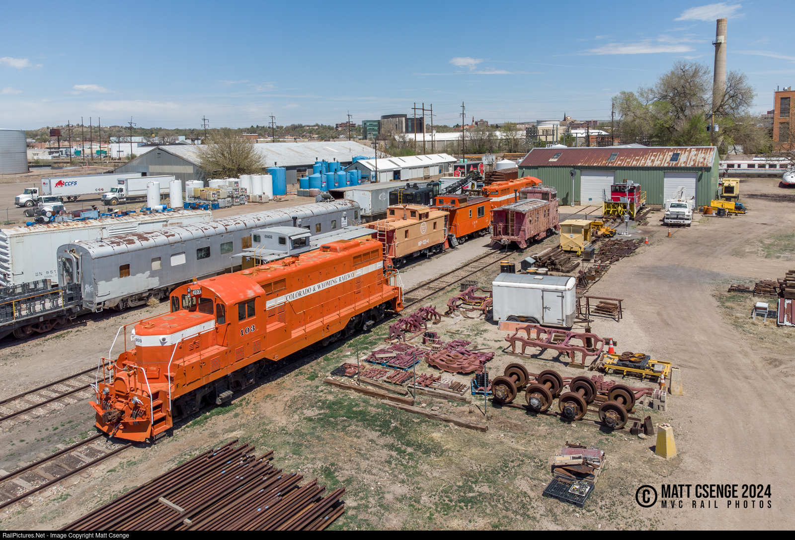 Colorado & Wyoming Railway GP7 no. 103 is seen amongst a variety of other preserved equipment at the Pueblo Railway Museum in Pueblo, CO. |