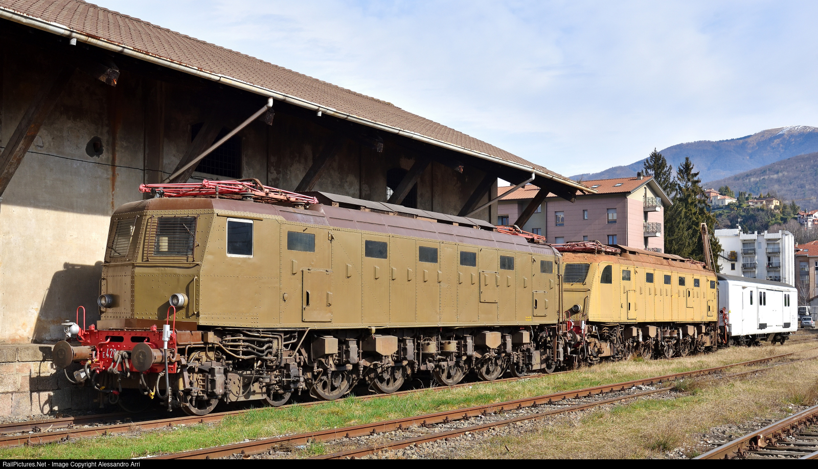 | Two locomotives of the e428 group of the State Railways are preserved at the Luino station by the Verbano Express Association; number 174 was built in 1939 with a semiaerodynamic case, 208 in 1940 with an aerodynamic case. They were used to haul heavy passenger trains on the most important lines until they were replaced by newer, more powerful locomotives and ended service with local and freight trains on lowland lines.