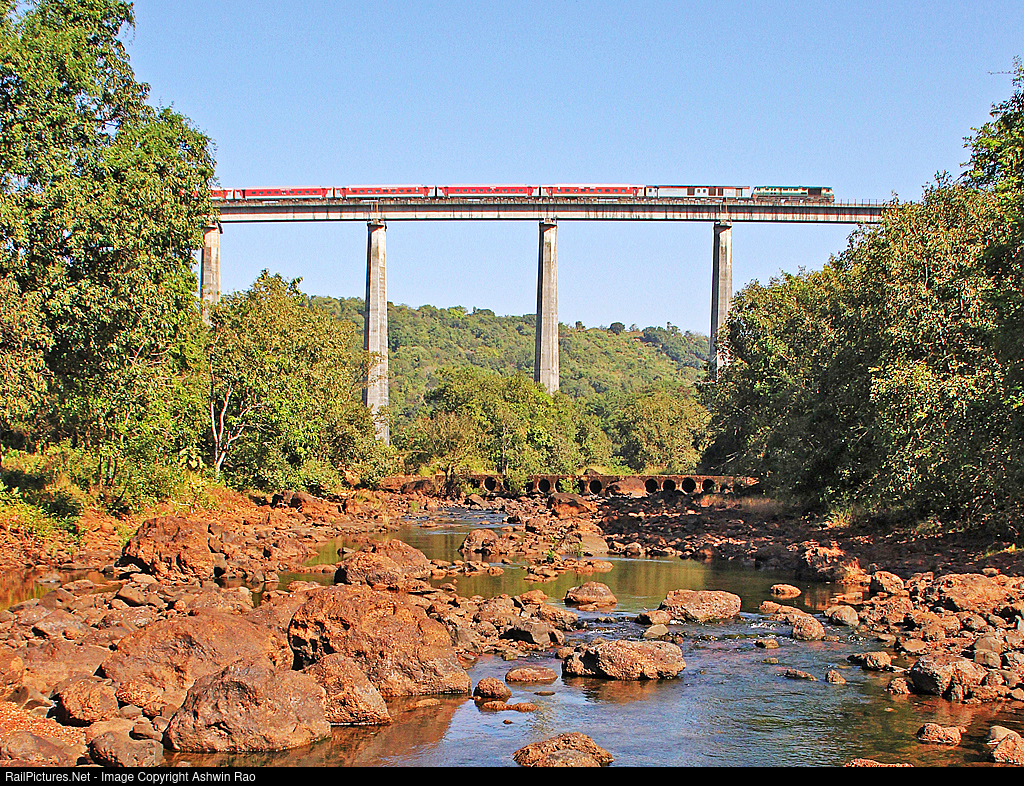 12432 Nizamuddin Trivandrum Rajdhani at Panval via duct near Ratnagiri.