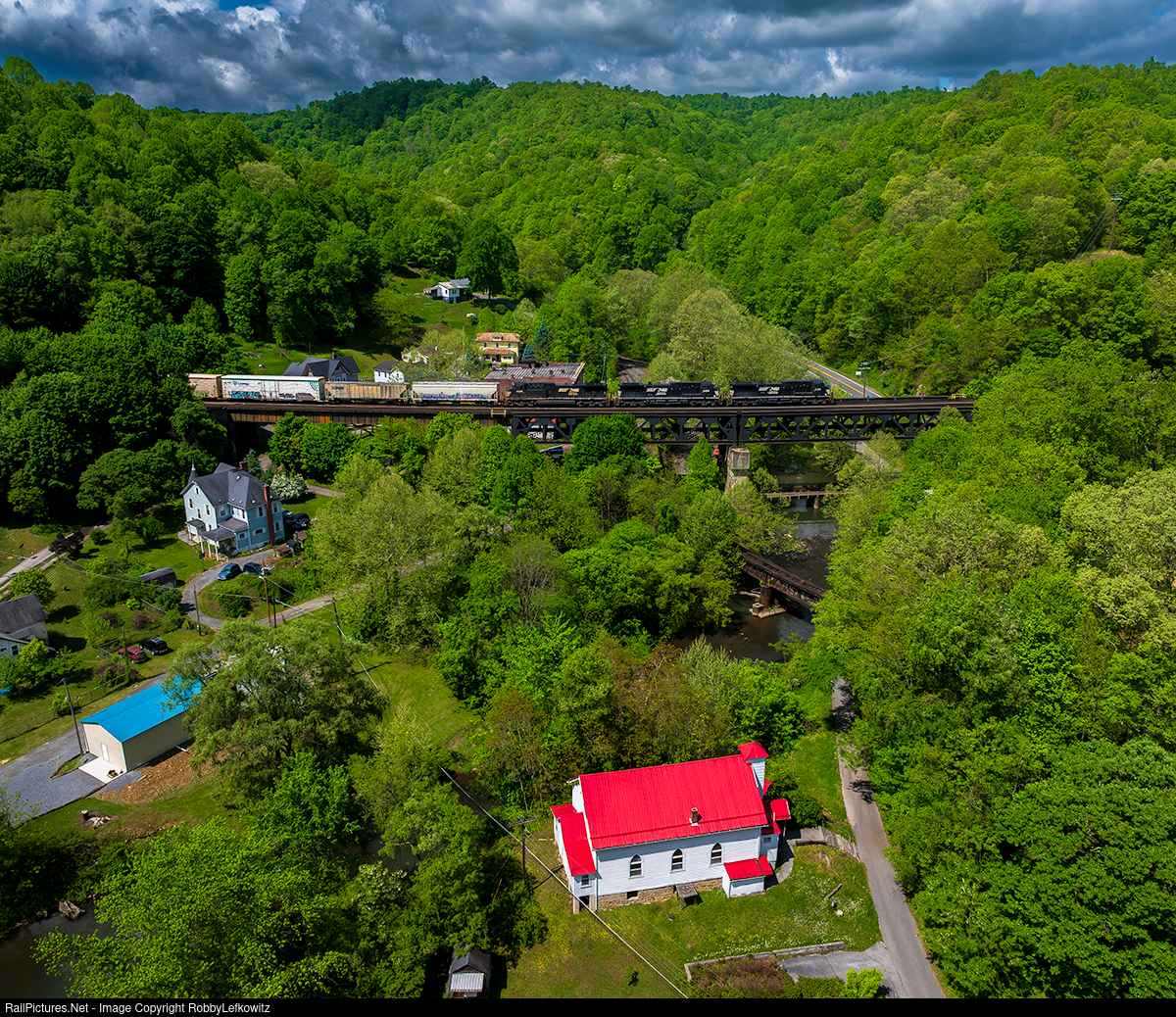 NS 4741 brings up the rear of a 3 pack of helpers, assisting manifest NS 118, as it makes a final push into Bluefield, West Virginia. |