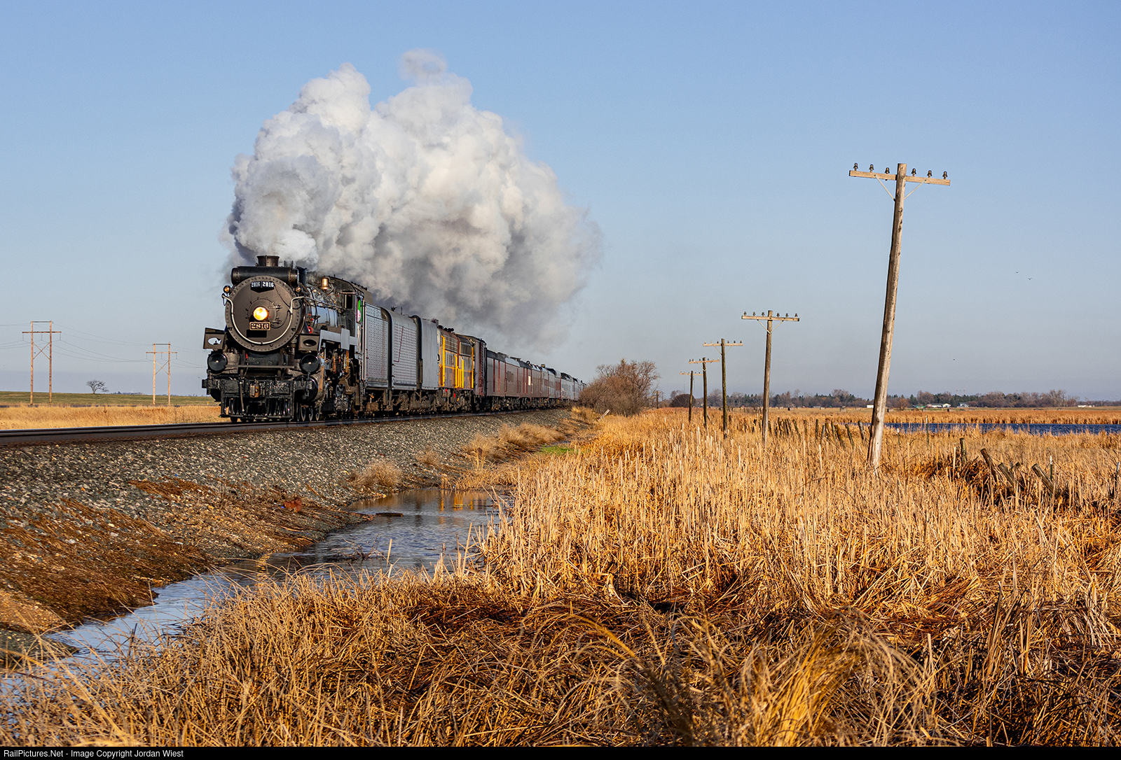 | 2816 hustles east on its trip to Glenwood through the North Dakota prairie. Although not the CP main in Canada, this locomotive pretty much looks right at home here along the ex SOO main. |