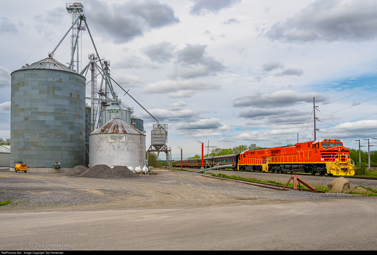1899 was the founding year of Genesse and Wyoming Railroad. This freshly painted GE bears the same number and was coupled with fresh EMD numbered 125 to honor the 125th Anniversary. A special passenger excursion from Brooks Ave Yard to Mt Morris carried railroad personnel to mark the occasion. |
