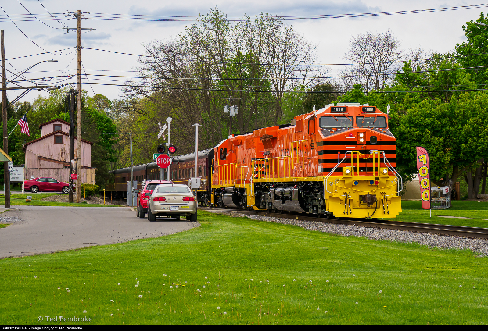 1899 was the founding year of Genesse and Wyoming Railroad. This freshly painted GE bears the same number and was coupled with fresh EMD numbered 125 to honor the 125th Anniversary. A special passenger excursion from Brooks Ave Yard to Mt Morris carried railroad personnel to mark the occasion. |
